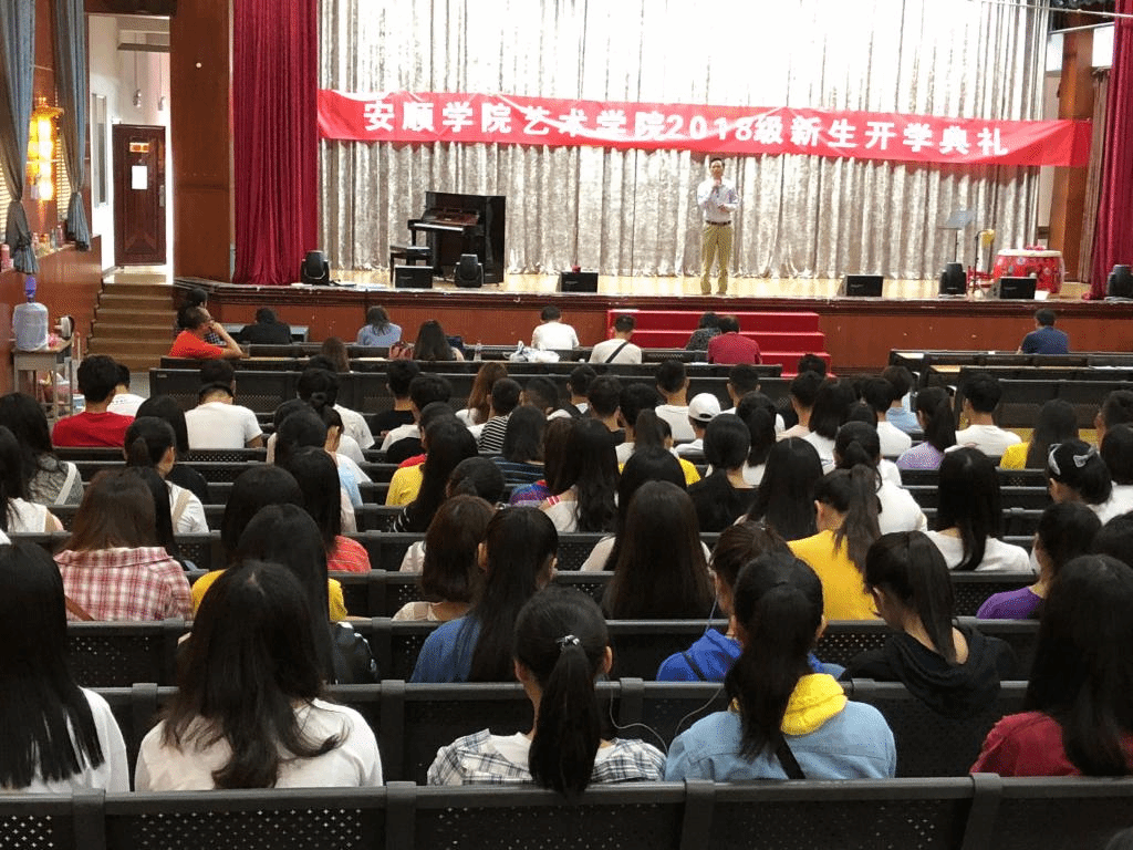 2018年9月6日上午9:00,艺术学院2018级新生开学典礼在学校礼堂举行。艺术学院院长罗文帝教授、党总支书记蒋晓昀教授、副院长谢朝玺教授、副院长何谦副教授参加了会议,会议由学生科科长蔡跃主持,教务科研与实践管理科科长付善莉老师、党政办公室主任李艺老师、团总支书记全坤老师、辅导员吴曼钰玲老师、2018级班主任、2018级全体新生参加了大会。