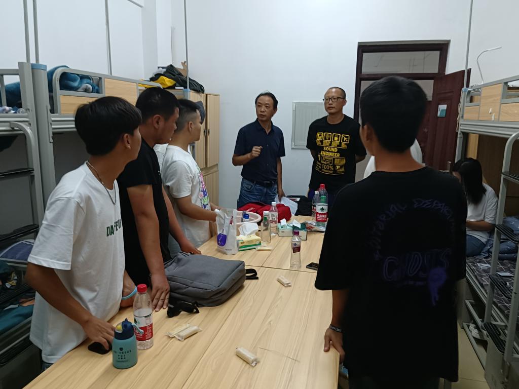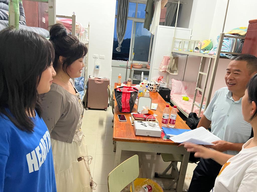 8月30日晚,艺术学院党委书记陈观黔、院长罗文帝、副院长谢朝玺、党委专职副书记刘颖及2022级全体班主任一行走访2022级新生宿舍,为新生们送上学院的关怀与温暖。