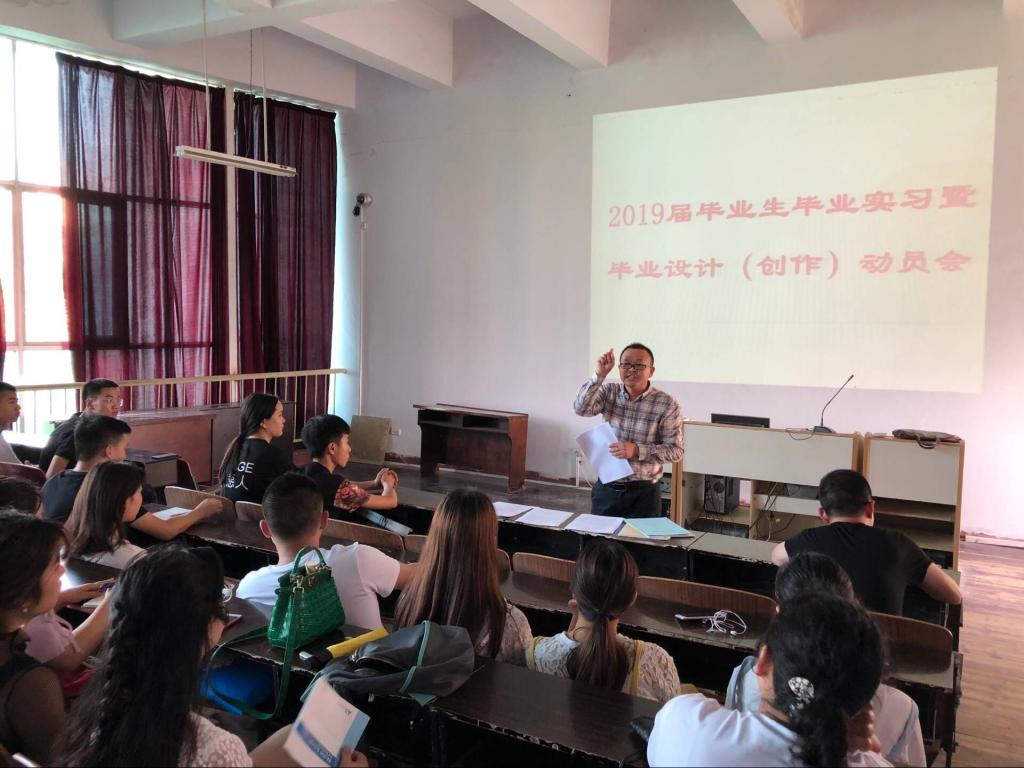 7月4日下午6点,艺术学院2019届毕业生毕业实习动员暨毕业设计(创作)启动大会在电教楼0951教室举行。艺术学院副院长何谦、教学、科研与实践管理科科长付善莉、各毕业班班主任及实习指导教师和2019届毕业生参加了此次大会,大会由教学、科研与实践管理科科长付善莉主持,大会开始,付善莉科长介绍整个会议流程。
