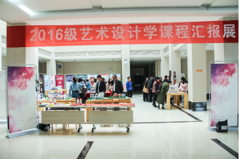 本次展览的作品是在我院史贤琴、张啸、江雪慧三位老师的指导下完成的。2016级艺术设计学班的64名同学分为18个小组,各自选定主题,同心协力完成了课程作业,展出的每件作品都是任课教师和同学们的心血,希望通过这次的课程汇报展,让同学们获得更多的自信心,提高同学们的积极性,变得更加的优