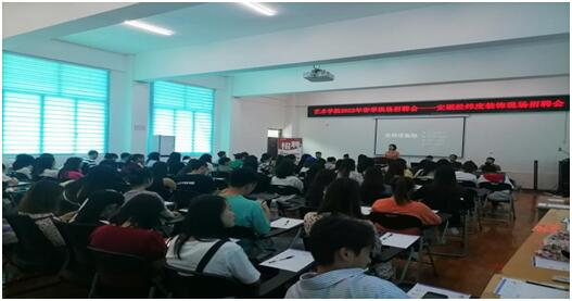 会上,首先由安顺经纬度装饰公司相关负责人从公司概况、行业发展概况、工资待遇、岗位发展方向及个人亲身经历等方面向毕业生作就业宣讲。随后,副院长谢朝玺讲话并指出,学校根据就业的形势,通过开展招聘活动周帮助毕业生促进就业,引导毕业生结合自身实际确定就业目标。
