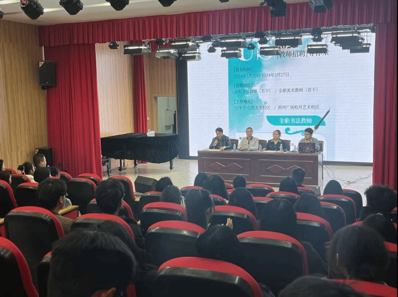3月21日下午,艺术学院2024届毕业生第一次校园招聘会在美术楼一楼音乐厅举办。本次招聘会邀请安顺关岭柏月艺术培训学校到校招聘,招聘会以现场宣讲和现场招聘的方式同步进行。艺术学院就业专干赵洪举、杨震海到场指导,艺术学院2024届艺术设计、美术学专业毕业生80余人参加招聘会。 招聘会由赵洪举主持。