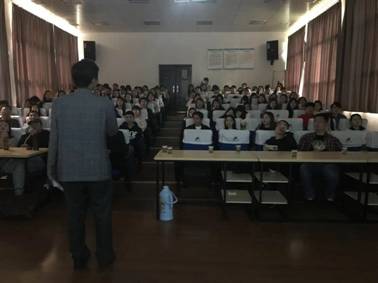 李院长通过两个小时的讲座,给在座的师生进行了一次西方绘画的巡礼,使大家很受益。讲座结束后,艺术学院学生代表、2018级美术学本科生盛莉同学上台为李福岩教授献花致谢。