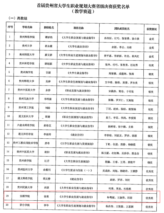 3月14日,首届贵州省大学生职业规划大赛省级决赛在贵州师范大学落下帷幕。3月28日,省教育厅正式公布大赛结果,奇乐棋牌在此次大赛中获得多个奖项,其中艺术学院2021级环境设计专业学生杨家骏获成长赛道高教组银奖,人文学院2021级历史学专业学生杨明才获就业赛道高教组优秀奖,张秋老师团队获教学赛道优秀奖。