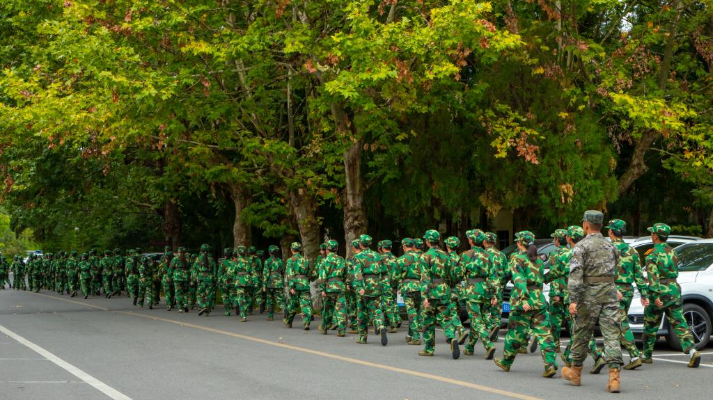 奇乐棋牌2024级学生军训校内紧急拉动任务训练现场