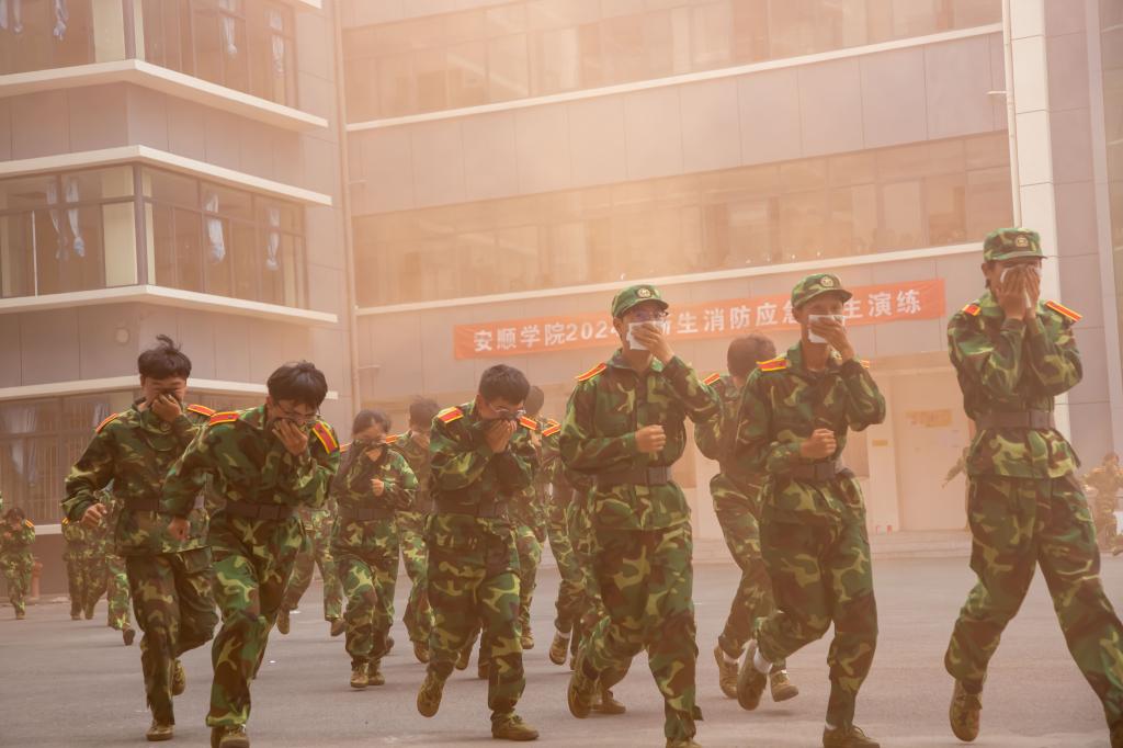 迅速响应,教导有“方”。在所有人员安全疏散到指定集合点后,教官清点完人数并对防空疏散演练进行总结,接着便进行消防疏散演练,随着火警警报的响起,同学们迅速响应,从消防烟雾中有序撤离。教官和学校消防队积极引导,确保大家安全、迅速地到达指定的集合点,确保疏散过程中保持冷静,不恐慌、不慌乱,“弯腰、低头、捂口鼻”,到达撤离集合点排好队伍及时清点人数,全程井然有序,短短几分钟便完成了全体学生的疏散。