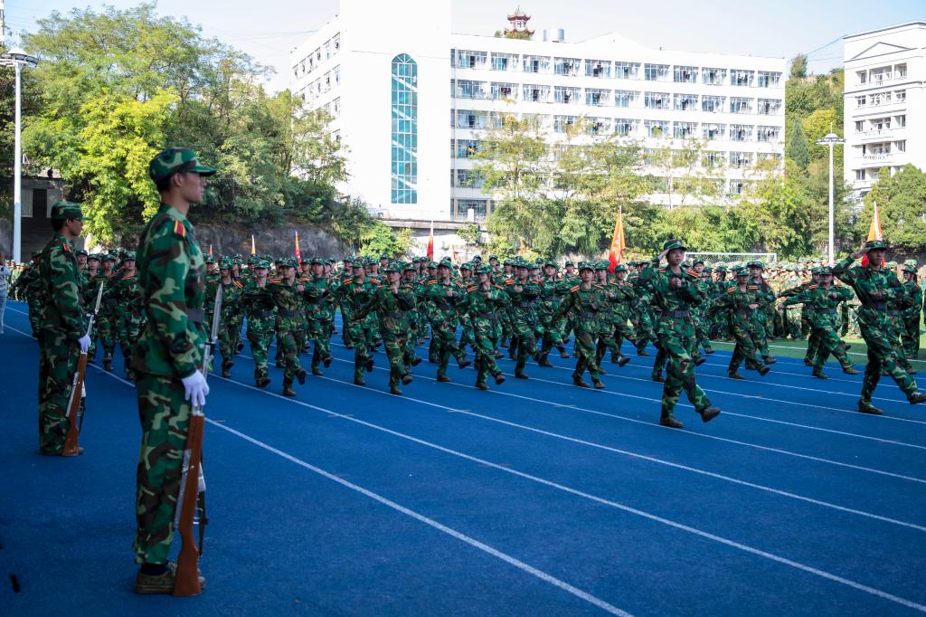 奇乐棋牌党委书记罗荣彬检视由2024级参训学生组成的23支连队