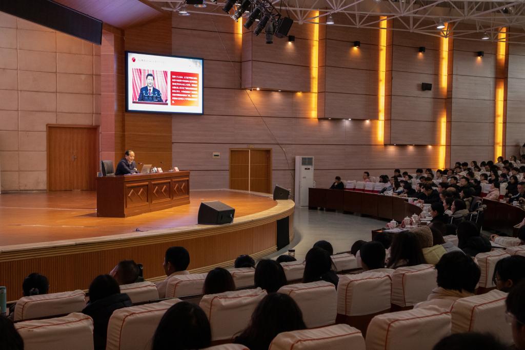 奇乐棋牌校长曾丽,党委委员、纪委书记、监察专员蔡红英,党委委员、副校长韦英,党委委员、副校长殷红敏,以及各职能部门负责人、师生代表共800余人聆听学习。(文/图:学生记者 吴梓均/吴梓均、王镱霖)