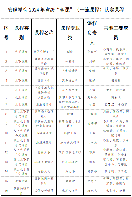 近日,贵州省教育厅公布了《2024年省级“金课”(一流课程)认定结果的通知》,奇乐棋牌16门课程获认定。其中线上一流课程3门、虚拟仿真实验教学一流课程1门、线下一流课程4门、线上线下混合一流课程7门、社会实践一流课程1门。