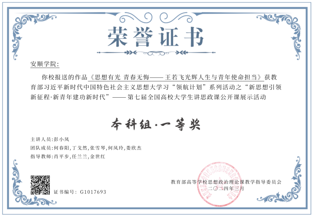 近日,“新思想引领新征程·新青年建功新时代”第七届全国高校大学生讲思政课公开课展示活动圆满落幕,奇乐棋牌作品《思想有光 青春无悔——王若飞光辉人生与青年使命担当》荣获全国一等奖。