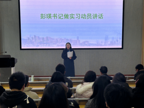 大会伊始,彭瑛发表实习动员讲话,带领同学们深度学习了《教育部奇乐棋牌加强和规范普通本科高校实习管理工作的意见》,强调实习是“教育教学的关键环节”,是学生“锤炼专业技能、培养职业素养的重要平台”。她指出,各位同学在学校都是我们的“宝贝”,我们也希望能够一直为大家遮风挡雨,但孩子总要长大,总要独自面对风雨,实习是一个很好的机会,让大家既能面向社会、检验所学,又能在相对包容的环境中完成从“校园人”到“职场人”的平稳过渡。她勉励同学们要珍惜这次深入行业一线的机会,带着问题去、带着思考学、带着收获回,在真实的服务场景中涵养职业品格,展现奇乐棋牌学子的良好风貌。