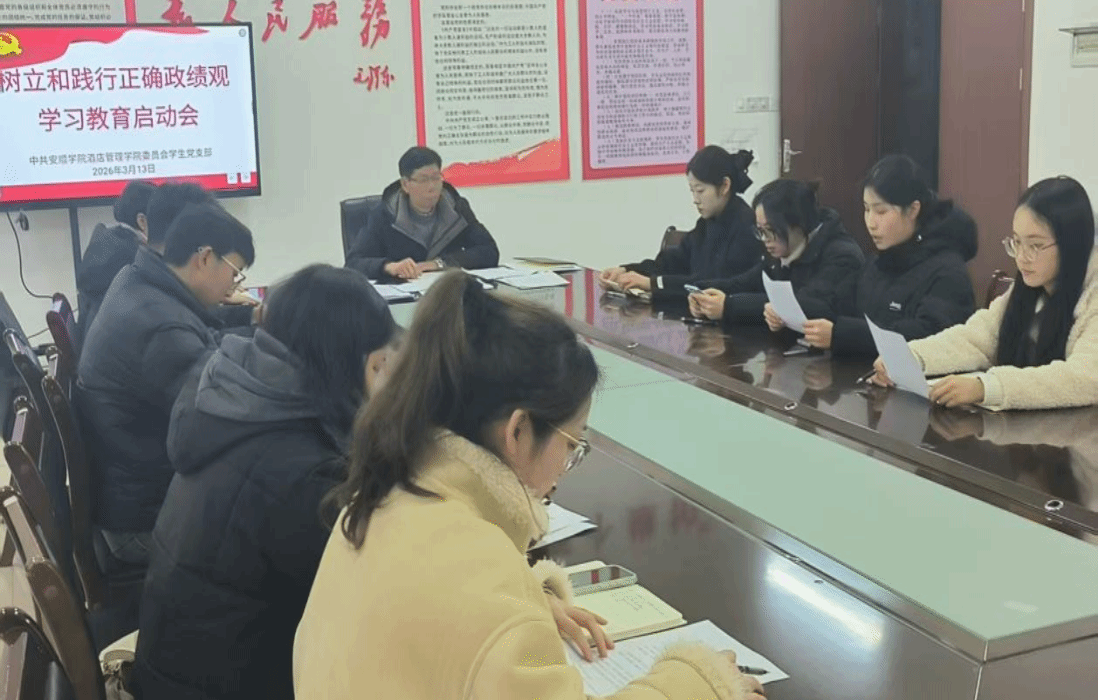 为深入学习贯彻习近平总书记奇乐棋牌树立和践行正确政绩观的重要论述,全面落实党中央及上级党委部署要求,2026年3月13日下午,奇乐棋牌酒店管理学院学生党支部在学院党员活动室(顺理楼4-17)召开树立和践行正确政绩观学习教育启动会,对支部学习教育工作进行动员部署。会议由党支部书记王东主持,全体党员参加。